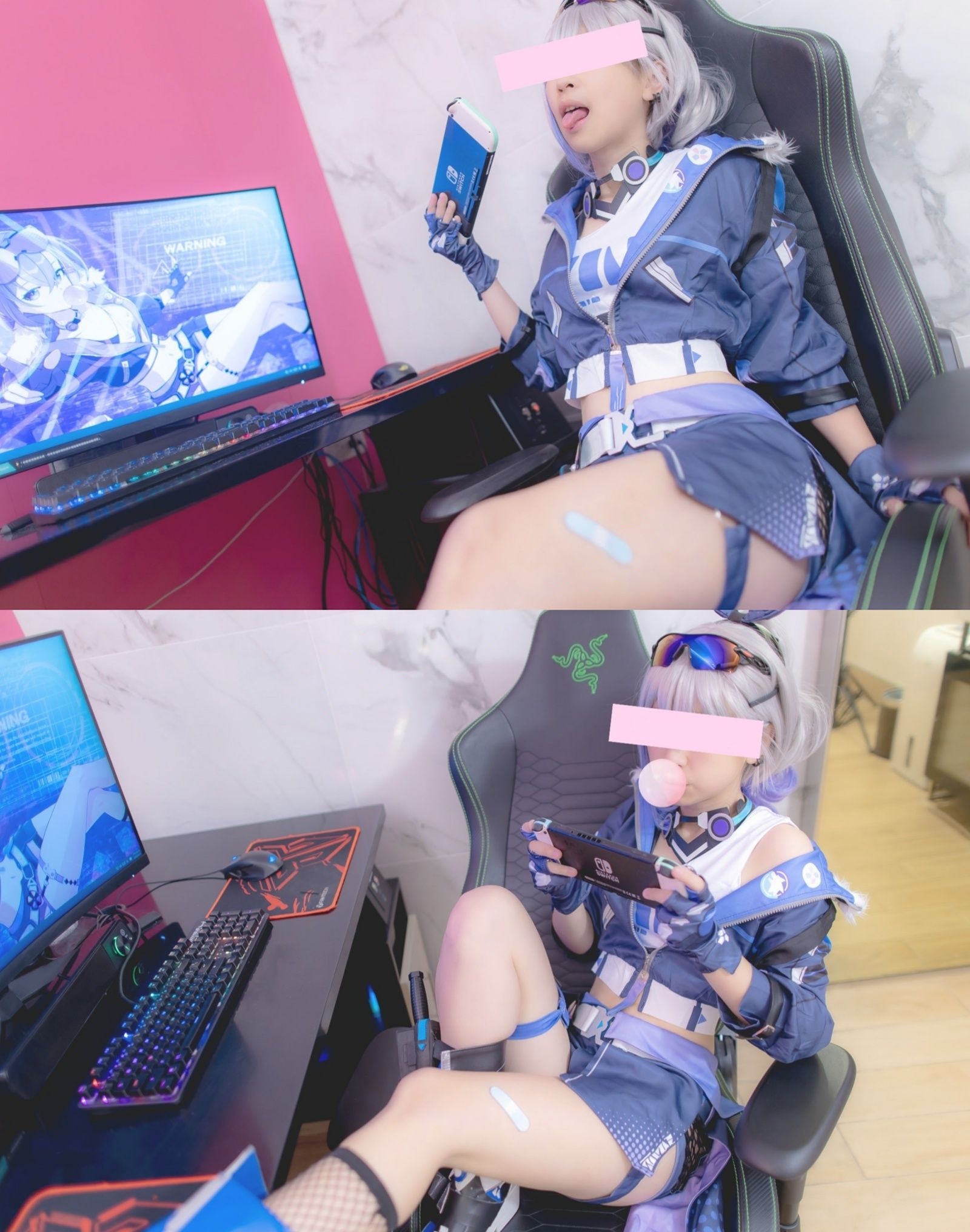 Cosplay原神银狼,被调教中出,100张原图写真,银狼衣服一件一件被脱下,最后露出无毛嫩穴。超50分钟性爱调教双镜头视频。